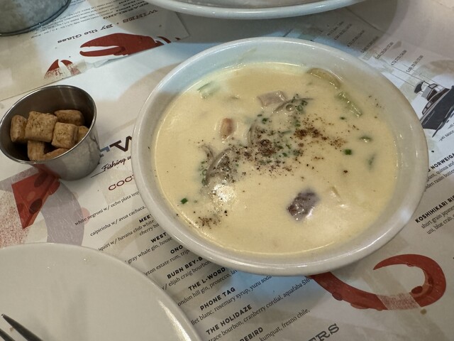 生牡蠣、ホタテのセビーチェ、イングリッシュクラムチャウダー、Steamed Musselsなどを注文。