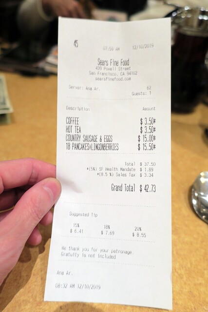 支払いには、サンフランシスコのTAX$1.89