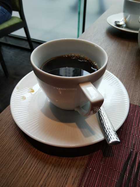 その料理だが、前者はブリオッシュに載っていて、サーモンが添えてあって、キャヴィアが載っていた(笑)。後者はビスケットに載っていて、生ハムが添えてあって、ブラックトリュフが掛かっていた(笑)。味はまあ良かった。しかし我々は朝から何を食べているんだ?(笑)
