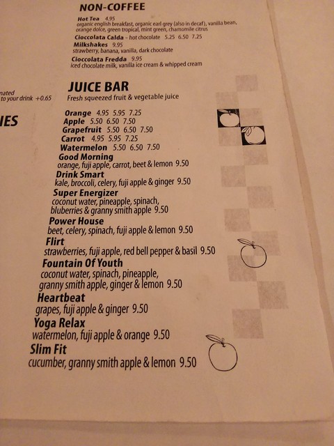 それと、CaffèのHouse Coffee(4.50ドル)を2杯、JUICE BARのOrange(4.95ドル)も2杯。最後なので豪勢にいこう(笑)。