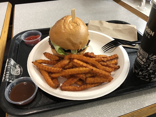 1つ1つ注文後に焼いてくれる、がっつりアメリカンなハンバーガーです。
