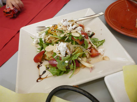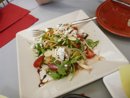 バレンシアサラダ・・オレンジ、ベビーリーフ、ヤギのチーズ、苺、オリーブ、アーモンドスライストッピング・・あっさりとした食べ安いサラダで美味しく頂きました。