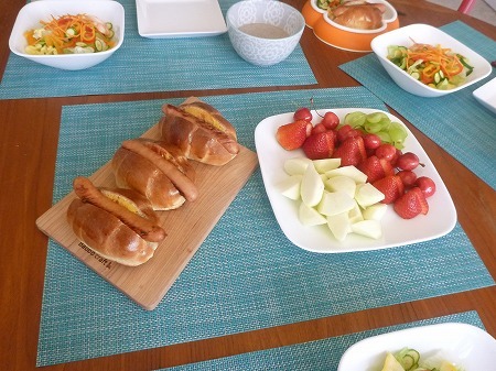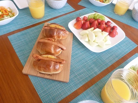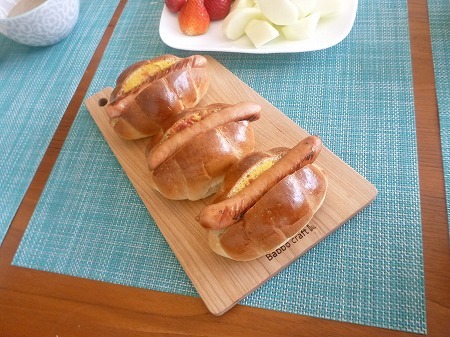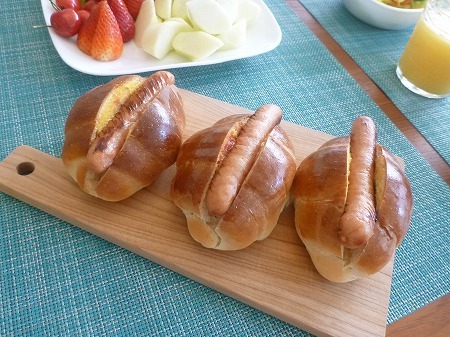 翌朝朝食にバターロールでホットドッグで頂きました。