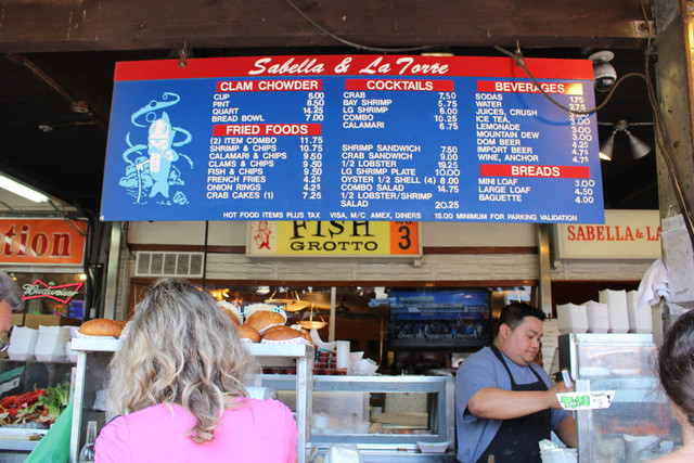 サンフランシスコの漁港の観光地「フィッシャーマンズワーフ」のシンボルのカニ看板が立つ並びのお店のひとつです。