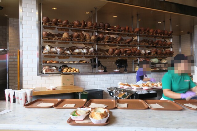 伝票が渡され、左手奥の受け取り口で受け取るシステム。