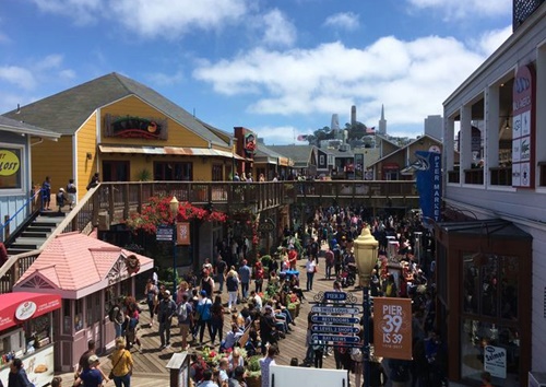 ピア39はフィッシャーマンズワーフで一番にぎやかなショッピングモールです