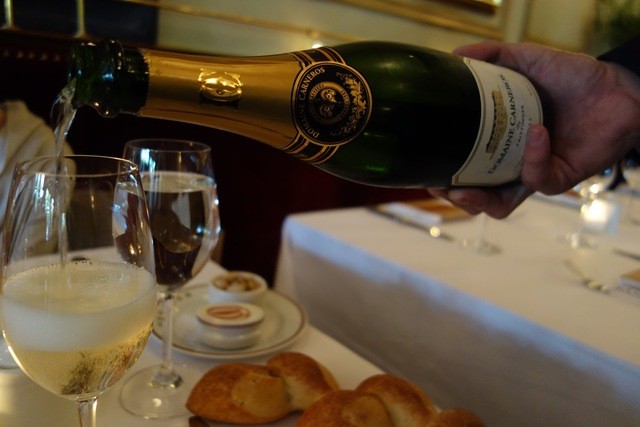 ドメーヌ・カーネロスの泡を1本で通します。シャンパーニュのテタンジェがナパで作るスパークリングワイン。レストランでわずか60ドルで飲めるのは嬉しいですね。ピノとシャルドネのいいとこ取りをしたような味わいで、日本で同レベルのシャンパーニュを飲むと2万円を軽く超えることでしょう。