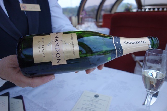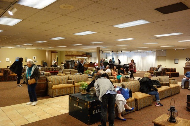 ナパのダウンタウンの外れに発着駅があります。待合ロビーはゆったりとした設計で、出発時刻の30分前ごろからパラパラと人が集まり始めます。チェックイ後は1杯飲みながら待つ。クルーズ船でのイベント前の雰囲気にすごく似ています。グループ別に呼び出しがかかり、順番に乗車します。