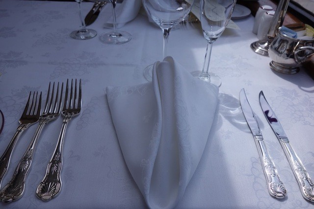テーブルセッティングは心からダサいです。飲み食いしてひとりあたり30,000円を超えてくるレストランという意味では最低レベルのコーディネイトかもしれません。