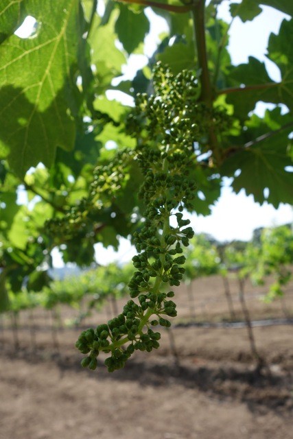 ホテル敷地内に葡萄畑が広がります。空が高く真っ青で抜群で気持ち良い。葡萄はようやく実を付け始めたばかりでかわいらしい。