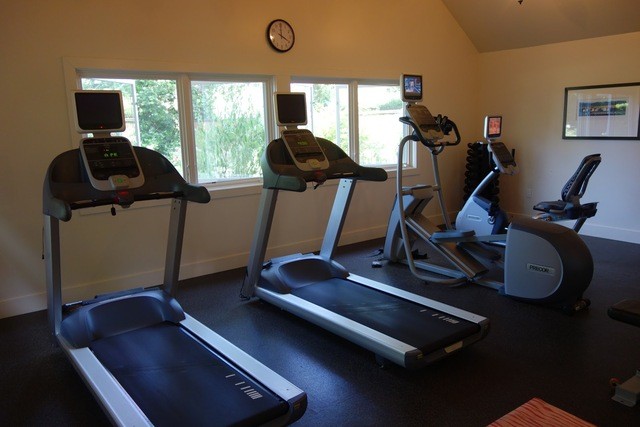 フィットネスルームは小さめですが、外でブドウ畑を走れば問題なし。