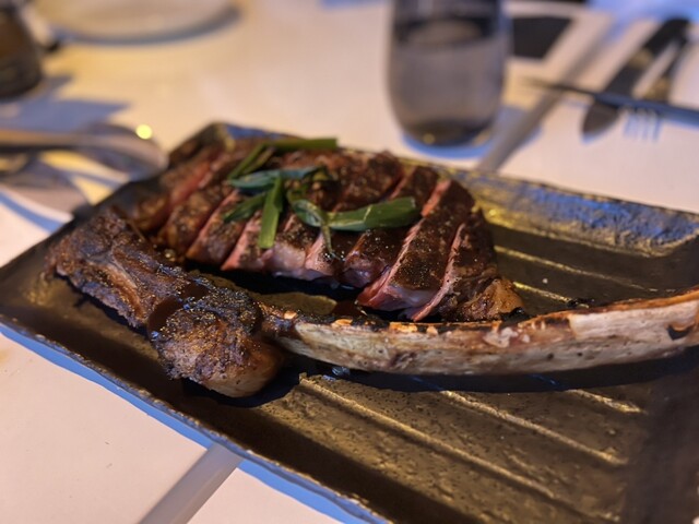 ダイナミックなステーキにグリル野菜、多数のワインと素晴らしい接客の楽しめる本格的なステーキのお店。料理は、トマホークステーキ、アスパラガスのグリル、マッシュポテト、おすすめのサラダどれを食べても美味し...
