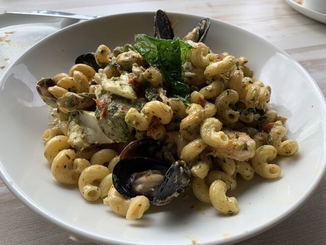 海岸沿いでクラムチャウダーとフィッシュ&チップスを食べました。