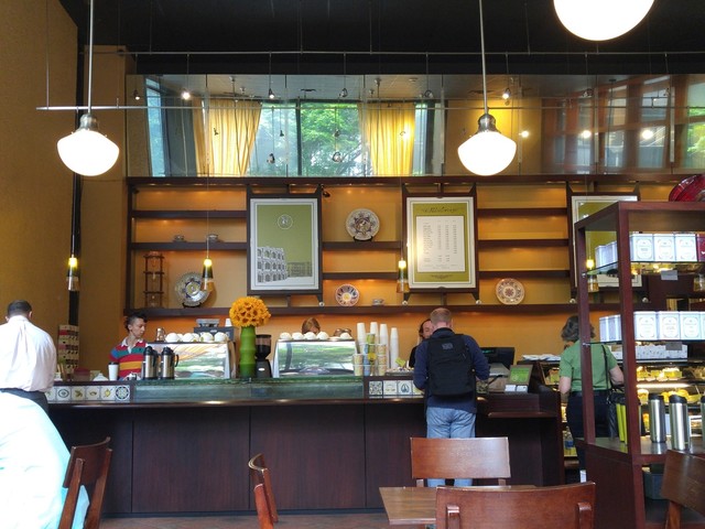 カフェラテは表面に葉っぱを描いてくれた。ミルクがおいしく、コーヒーも良いが、やはりミルクがおいしく、バランスの良い一杯。軽めなところが良い。食事に合うカフェラテ。