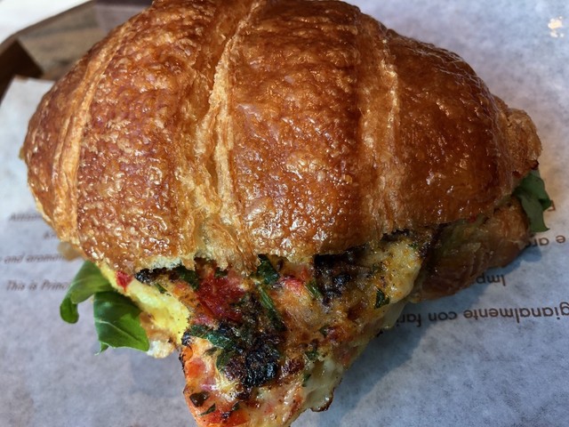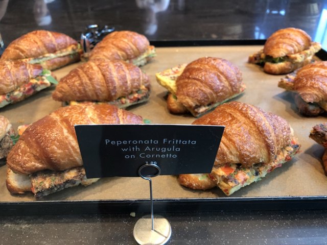 店内は焙煎工場。天井には茶色のダクトや真鍮のパイプが張り巡らされ圧巻。どこで注文すれば良いか一瞬わからずも、入店して左側のカウンターでコーヒーを、右奥のベーカリーコーナーでブレッドを注文するというマッピング。注文すると名前を聞かれるので告げましょう。しばらくすると「mamesuke, Here you are!」と呼ばれます「Yes!」と答えましょう。これはブルーボトルコーヒーで日本でもお馴染みだし、シアトルのカフェには結構多いシステム。