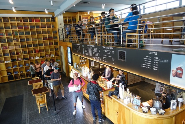 オーナーであるクレベック兄弟は、建設業に携わっていた経歴を持ち、店舗は2人がデザインと工事を手がけています。なるほど日本人が想像するポップでカジュアルなドーナッツ屋とは程遠く、スタバ的センスに溢れた居心地の良い図書館のような空間です。