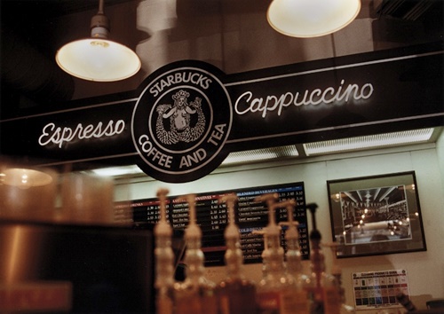 1号店だけのスタバのロゴは、私達の見慣れたグリーンのロゴと違います