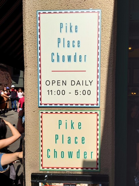 シアトルの観光名所のひとつ、パイクプレイスに行ったら、必ず訪れたいのがPike Place Chowder。
