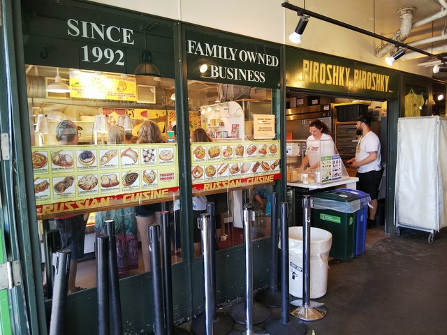 続いてすぐ近くにピロシキの人気店があるので行ってみた。STEWART HOUSEという棟の中にある店。1992年創業で、シアトル近郊に今4店舗らしい。