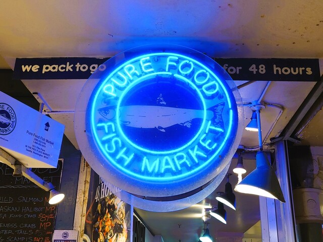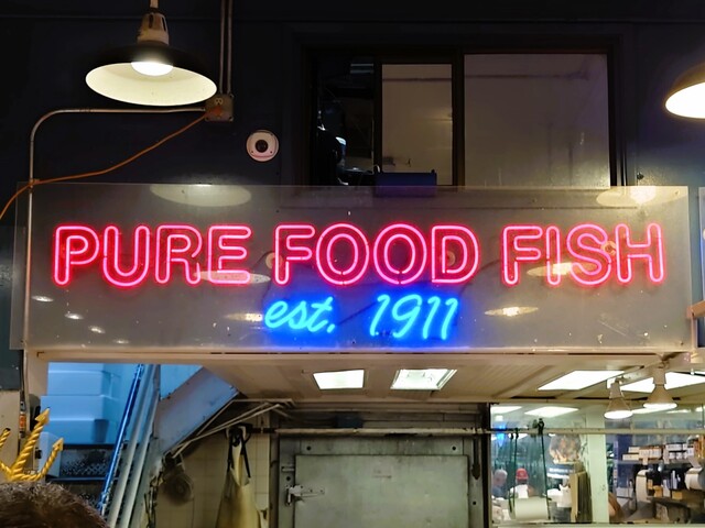 パイク・プレイス・マーケット内に位置するピュアフード・フィッシュマーケットは、1911年の創業。新鮮な地元産の魚介類や、燻製品などの加工品を提供している人気店。