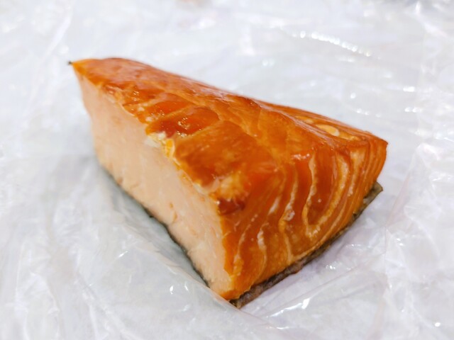 北西部産のキングサーモンの豊かな風味を引き出したスモークサーモン。アメリカではおなじみのアルダーウッドチップの力強い香りが印象的。ここのスモークは、市場近くのスモークハウスで塩漬けから燻製までの加工がされている。