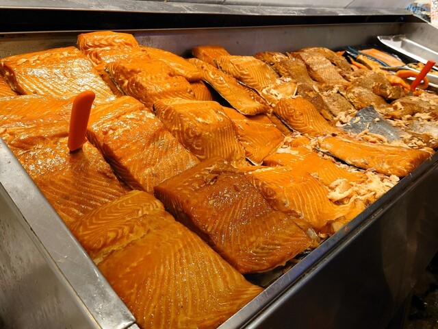 Smoked salmon that highlights the rich flavor of Northwest King Salmon, infused with the bold aroma of alderwood chips. It's perfectly cured in salt and smoked in a smokehouse near the market.