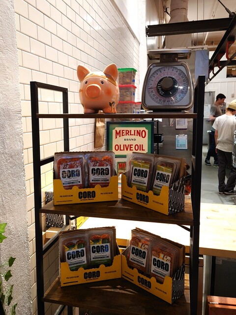 Salumiのサラミやペパロニは、すべて自然由来で抗生物質不使用のアメリカ産ポークを使用した、本格的で手作りの味。この自家製サラミやペパロニを使った魅力的なサンドイッチやデリ商品、サラダ、スイーツも楽しめる。