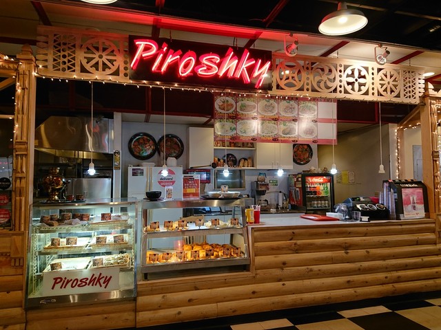 ディレクトリーではPiroshky Piroshkyとなっていたが、看板はPiroshkyとなっていた。でもロゴマークであの店と同じだとわかる。