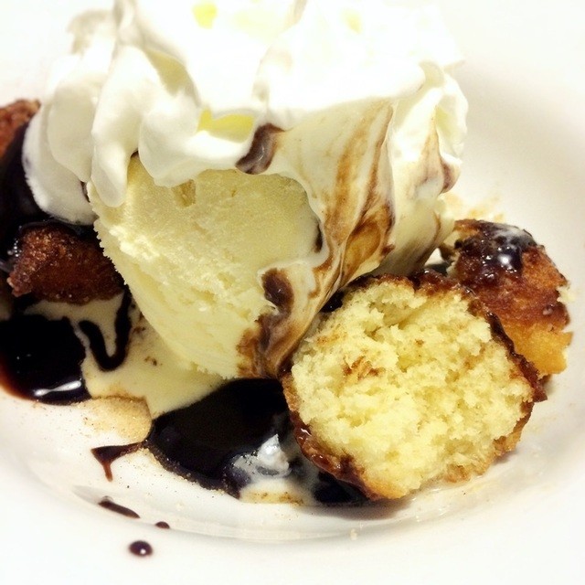 熱々のドーナツに、バニラアイスとチョコレートソース。まずい要素は何もありません!