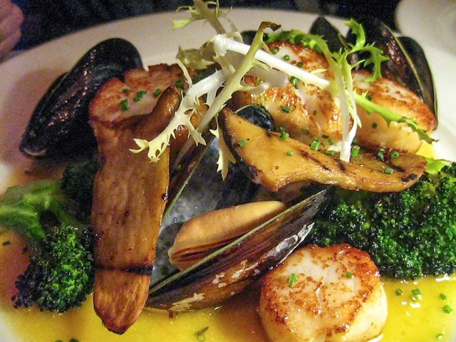 美食の街ポートランドでおすすめのレストランを聞くと必ず名前が挙がるのが,ダウンタウンの Broadway 沿いにある「ヒギンズ Higgins」です。シェフのグレッグ・ヒギンズ氏はポートランドのグルメシーンをけん引する敏腕シェフとしてその名を知られており,旬の地元有機野菜や魚介類へのこだわりは他に類をみないほどです。フレンチ・地中海風メニューにノースウエストの幸をぜいたくに取り込んだ料理はどれも独創性に溢れています。