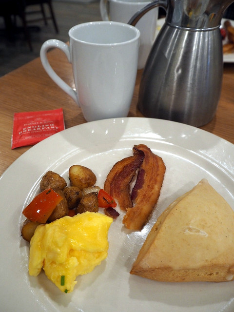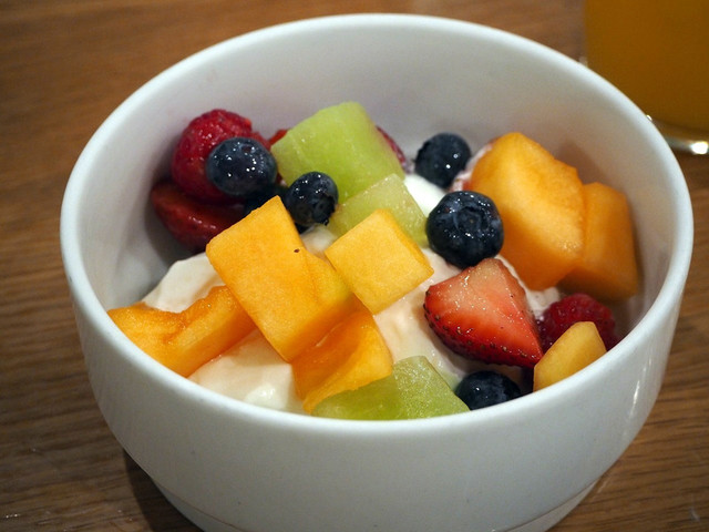 ホットミールのお味は普通ですが、パンやフルーツの種類が多くて満足度の高い朝ごはん、特にフルーツが美味しかったよが良い点。連日こちらで朝ごはんをいただいても、これだけのパンの種類があれば飽きることはなさそう。アップグレードがなくともこの朝ごはんが付いているなら、お得かなと思いました。