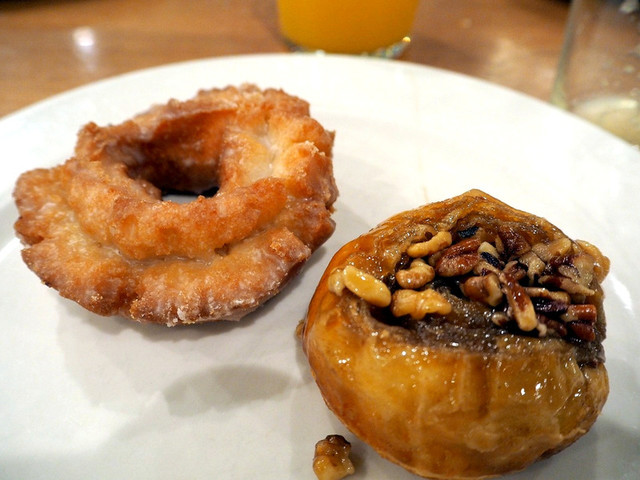 ブッフェ台のお料理を見ると、フルーツ、ヨーグルト、パンなど美味しそうなものが並んでいましたので、ブッフェを選びました。コーヒーは、ポートランドで有名な「STUMPTOWN」のもの、美味しいコーヒーがいただけそうで楽しみです。ファミレスのようなソファ席に座って朝食です。