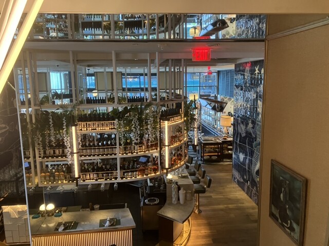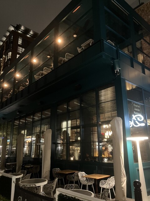 通された個室は、墨絵っぽいタッチの闘牛を描いた素敵な絵が壁にかかり、窓からポトマック川の夜景が見える素敵な部屋で、場違い感が更にマシマシに。