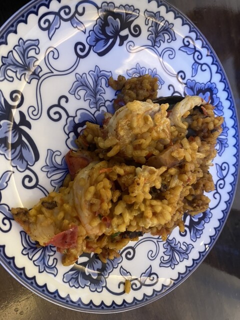 パエリア。名物だからと頼んでみた。海産物贅沢に入れた素晴らしい品だが、塩っぱ過ぎてライスは無理だった。