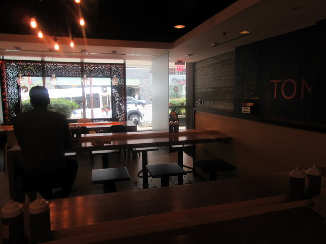 あと、ご飯がベースの場合ですが、スプーンが必要ですね。アメリカやヨーロッパでスプーンは子供が使うための食器、大人が食事で使うもんじゃないというのはわかりますが、ここはタイ料理なんだからスプーン出してくださいよ。食べ辛いことこの上なし。またタイ屋台特有の6つぐらいの調味料を好きなように加える、ということもなくて使える調味料は辛いソース2種だけ。