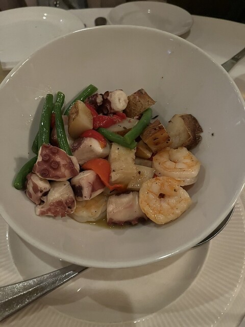 とってもおいしいイタリアンでした。ホテルの真横にあるので利用しました。いただいたのはおいしいフルーティなスパークリングワイン、それからおいしいシーザーサラダ、そしてシーフードサラダ、そしておいしいチキ...