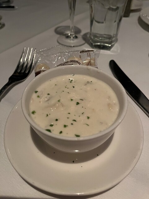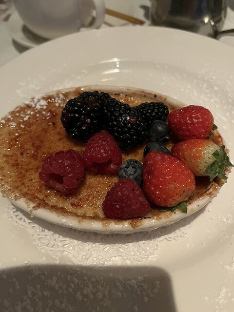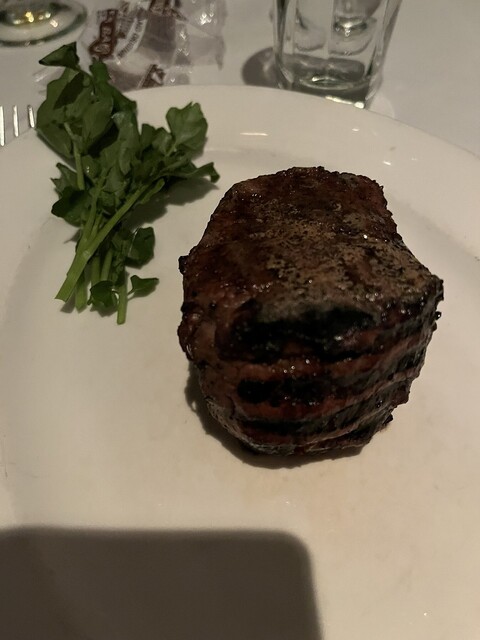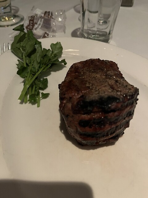 今日も素晴らしいステーキをいただきました。フィレミニョンが私の定番です。一番少ない量でもかなりのボリュームですが逆にこれ以外だと胃がもたれてしまいます。さっかりとした赤身、脂身がすくなくとても美味しいです。またアスパラガスも最高。マッシュポテトもとても美味しかったです。海老がたっぷり入ったシュリンプカクテルも最高でした。ワインもとても美味しくいただきました。前菜からステーキまでどれもとても美味しかったですね。最高でした。デザートはクリームブリュレです。これも最高でした。