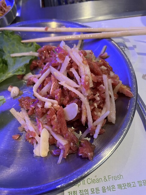 JALやANAのCAもいつも活用しているお店です。空港からほど近いところにあり、便利です。お客様といつもこちらで食事をしますが日本人の店員、気前がいい女性がいて、とてもサービスもいいです。女性がこまめにきてくれて肉をきってくれたりと本当にきがききます。私もここではじめてしったのですが肉をきるはさみをガラス瓶の口でといでました。そうするととってもよく切れる。お肉も最高でした。特にビビンバ最高ですね。冷麺はこれでもかというくらいボリュームがあり、おなかいっぱいです。
