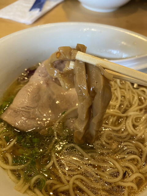 細ストレート麺は気持ち柔らかめの茹で上げ。