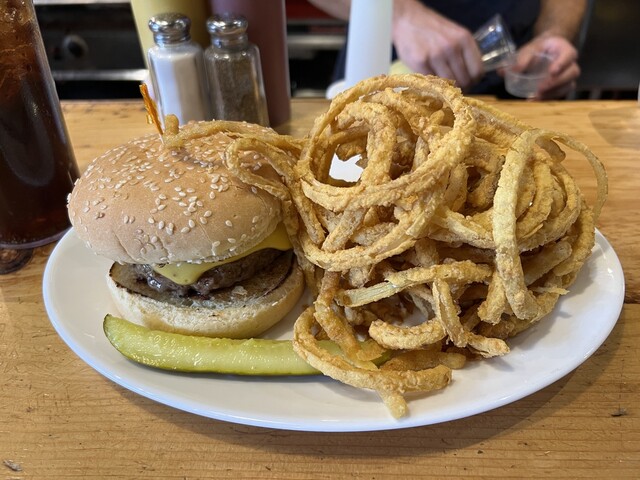 オニオンリングはかなり細めです。ハンバーガーもある意味アメリカのスタンダー...