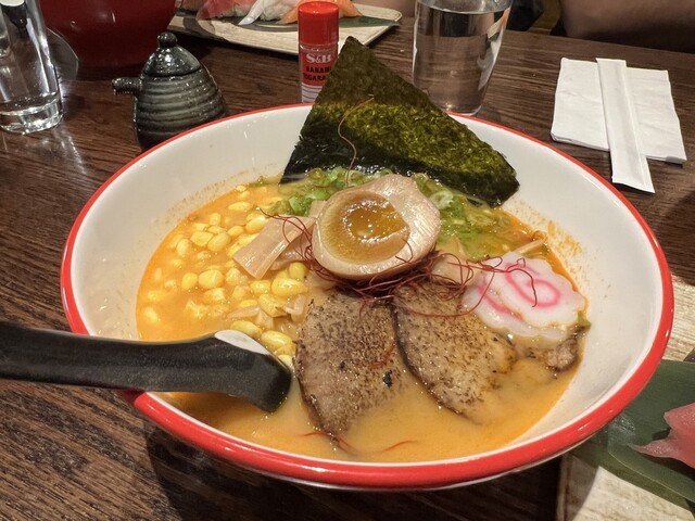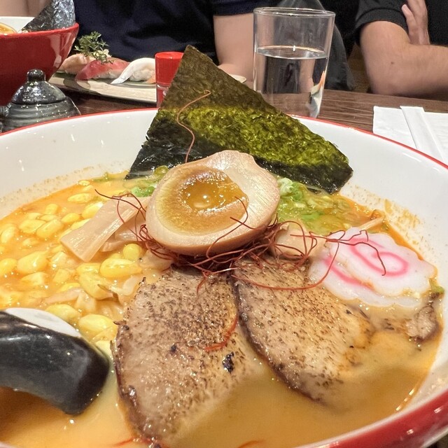 スパイシー豚骨ラーメン 15ドル、寿司アペタイザー 11ドル