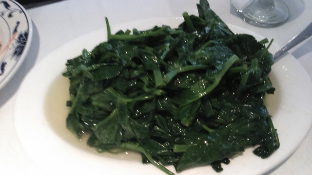 豆苗の炒め物はさっと短時間でいためてあるようで、野菜はシャキシャキ、ガーリックの風味もしっかりきいて旨いですね。