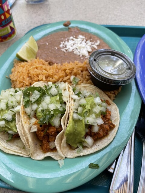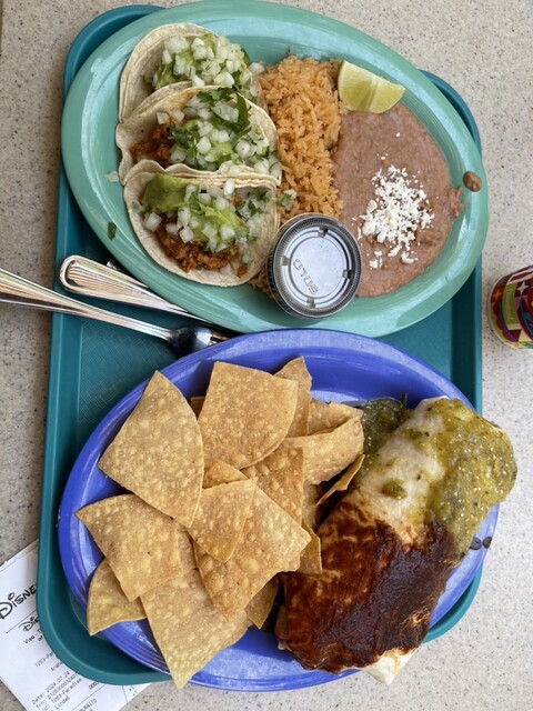 メニューはパスタやメキシコ料理などがあります。今回はタコスやブリトーを注文しました。3人で2皿です。