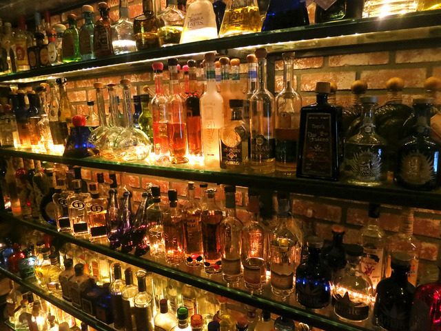 このお店の自慢がテキーラ博物館です。店内には,バラエティに富んだお酒が所狭しと並んでいます。