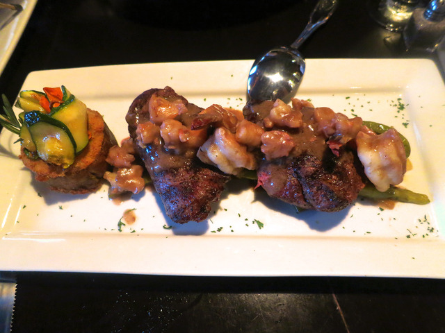 牛ヒレ肉とブラックタイガーをスパイスを付けて焼いたものです。