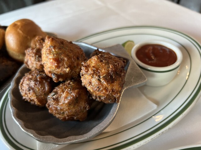 もちろんお目当てはStone Crab。ミディアムサイズとコンクフリッターを注文。
