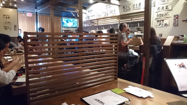 お店に入ったところには数人の待ちのお客さんがいましたが、予約してあったので小上がりのテーブル席に通されました。接客の女性は二人とも日本人です。周りのお客さんを見ると日本人もいることにはいるけれど、過半数は当地の方らしい。