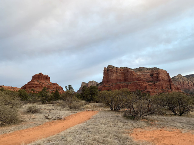 辺りはベルロックやカテドラルロックなどの奇岩が見えるはずだが