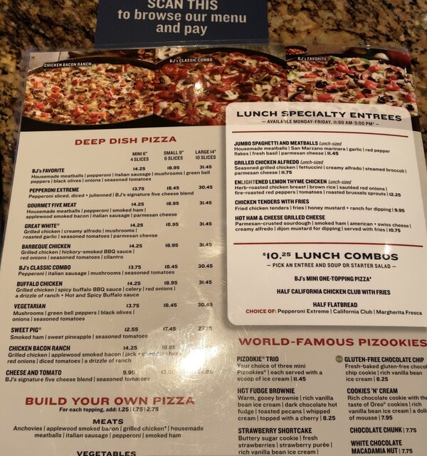 ピッツァ:「BJ's Classic Combo(Small)/$19.94」