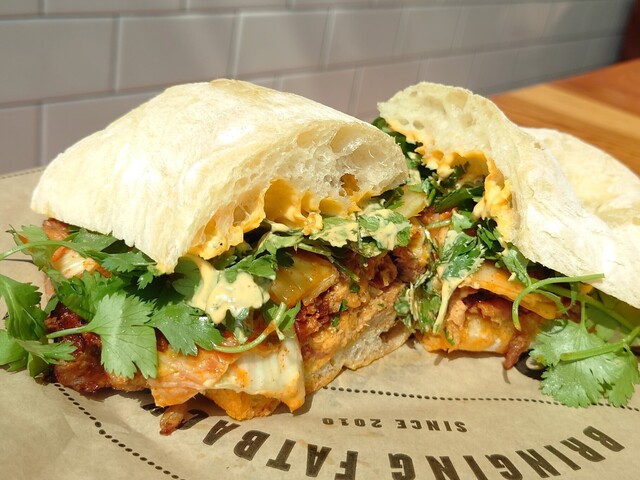 Lardoのメニューには、ポークがたっぷり詰まったサンドイッチや、大きなミートボールバインミー、手作りのポークをたっぷりトッピングしたフライなど、ユニークなアイテムが揃っている。品質にこだわり、すべてのサンドイッチには地元のDos Hermanos Bakeryのパンを使用。